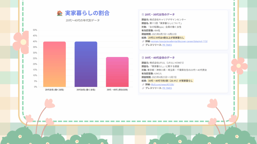 また、家賃・光熱費を抑えて貯金や投資を優先する「堅実女子」も増えたことで、「実家=ダサい」というイメージは薄れつつあります。